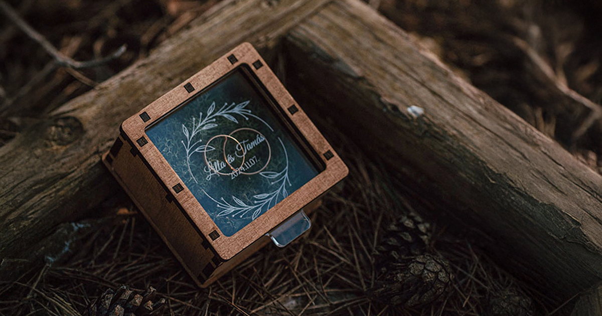 Esküvői gyűrűtartó dobozunk elegáns és időtálló kialakításával tökéletes kiegészítője lesz a nagy napotoknak, ahol a gyűrűitek biztonságban és stílusosan pihennek. A prémium minőségű fából készült dobozt egy 3 mm vastag, gravírozható plexi fedél teszi egyedivé, amely személyre szabható, így tökéletesen igazodik az esküvőtök hangulatához.