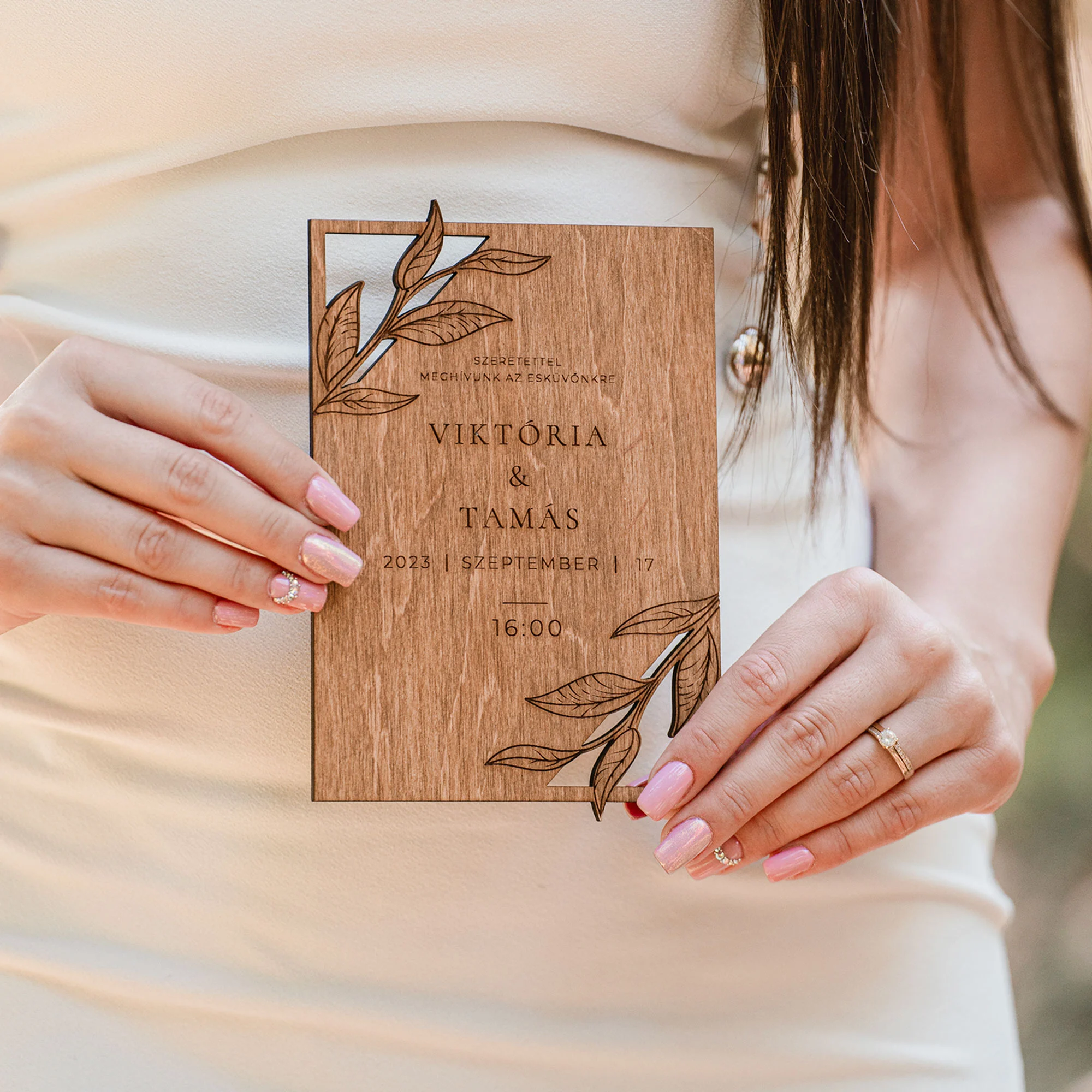 Ez a meghívó az időtálló elegancia és a személyes érintés tökéletes kombinációja az esküvőd számára. Legyél emlékezetes minden részletben, és hívd meg szeretteidet ezzel a fából készült mesterművel, amely az örökkévalóság jegyében született. A meghívó tartalmát kérjük üzenetben elküldeni illetőleg amennyiben szeretne látványtervet elkészítés előtt ezt is jelezni. A termék 4 mm vastag rétegelt falemezből készül.