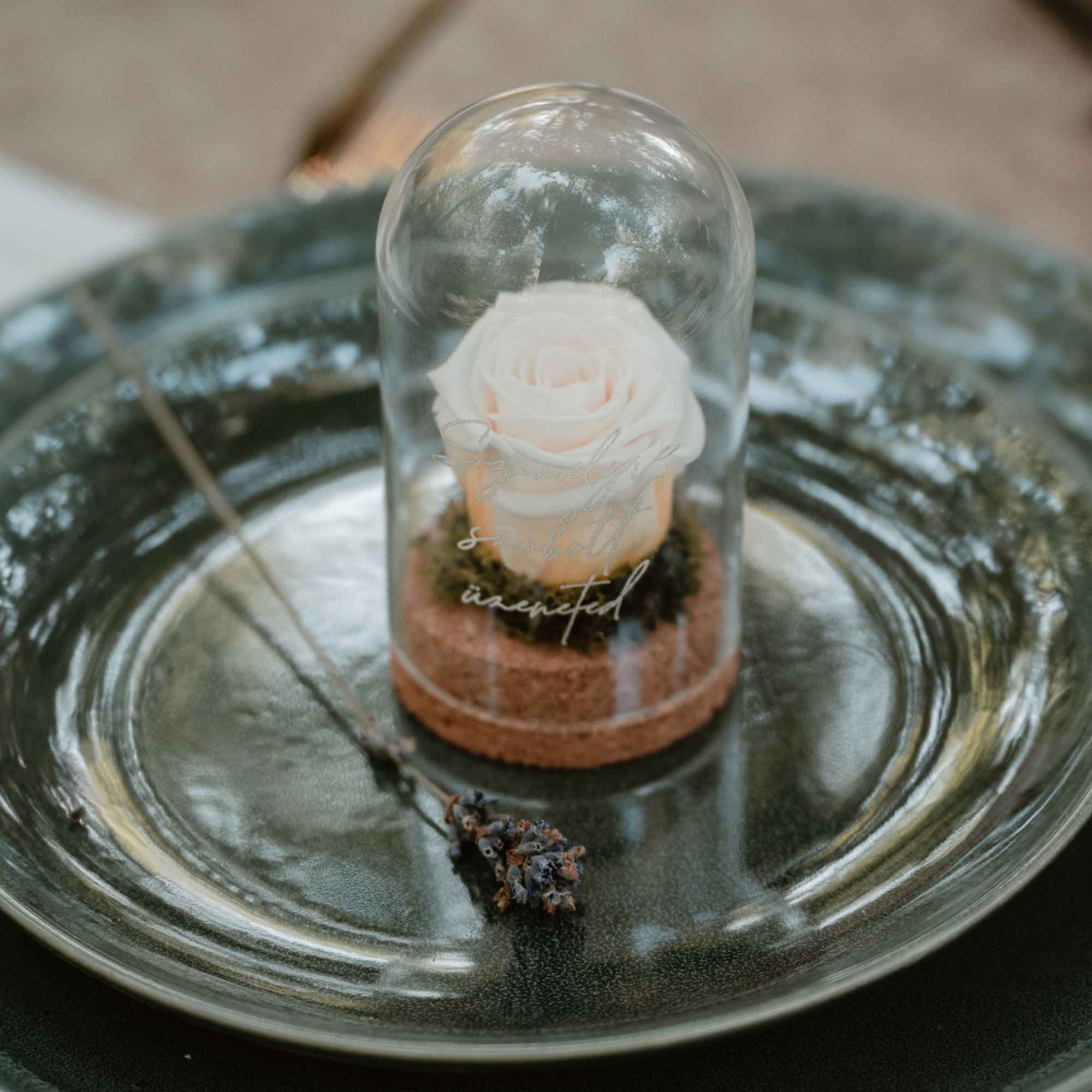 Üvegbúra mérete: 6cm széles, 10 cm magas Róza mérete: 4-5 cm A gravírozott üveg felirat lehetővé teszi, hogy egyedi üzenetet jelenítsen meg az ajándékozott számára. Az örök rózsa és az üveg búra tökéletesen kiegészítik egymást, és hosszú időn keresztül szép emlék marad az ünnepelt számára. Az örök rózsa kiváló minőségű, és sok évig tartósítva marad, így a megajándékozott hosszú ideig élvezheti ennek a szép és különleges ajándéknak az értékét. Az örök rózsa gyönyörű ajándék lehet a barátnőnek, az édesanyának vagy a nagymamának, és garantáltan emlékezetessé teszi az ünnepet.Egyedi feliratodat kérlek tüntessd fel a megjegyzésben.